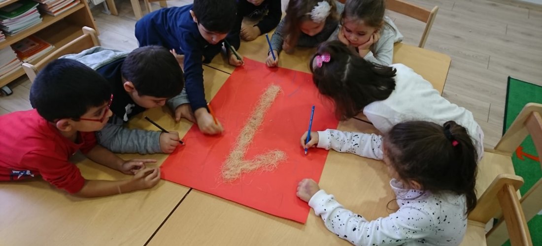 Doğal malzemelerle (mısır püskülü) sayı çalışması yaptık.